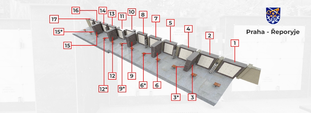 Níže vyberte číslo urnové stěny, ve kterém chcete urnovou buňku zakoupit.